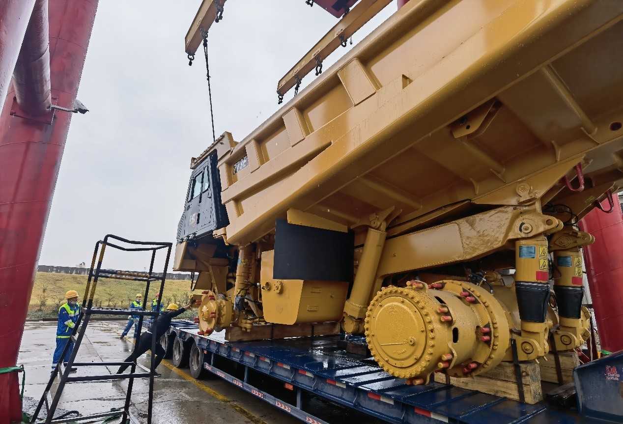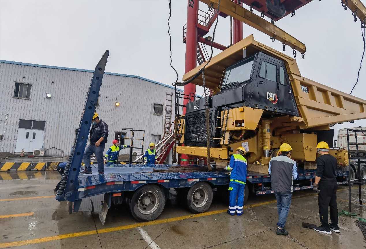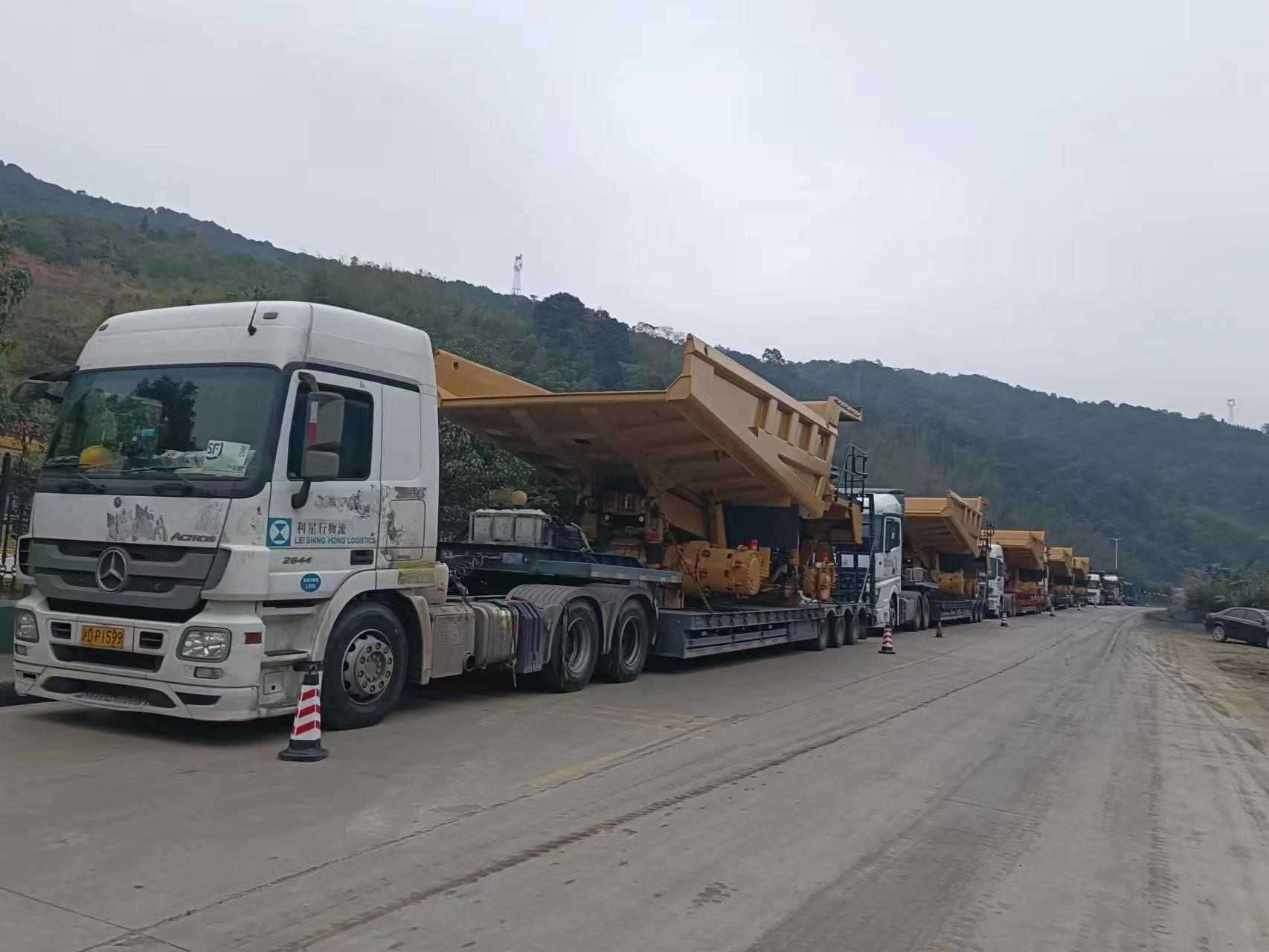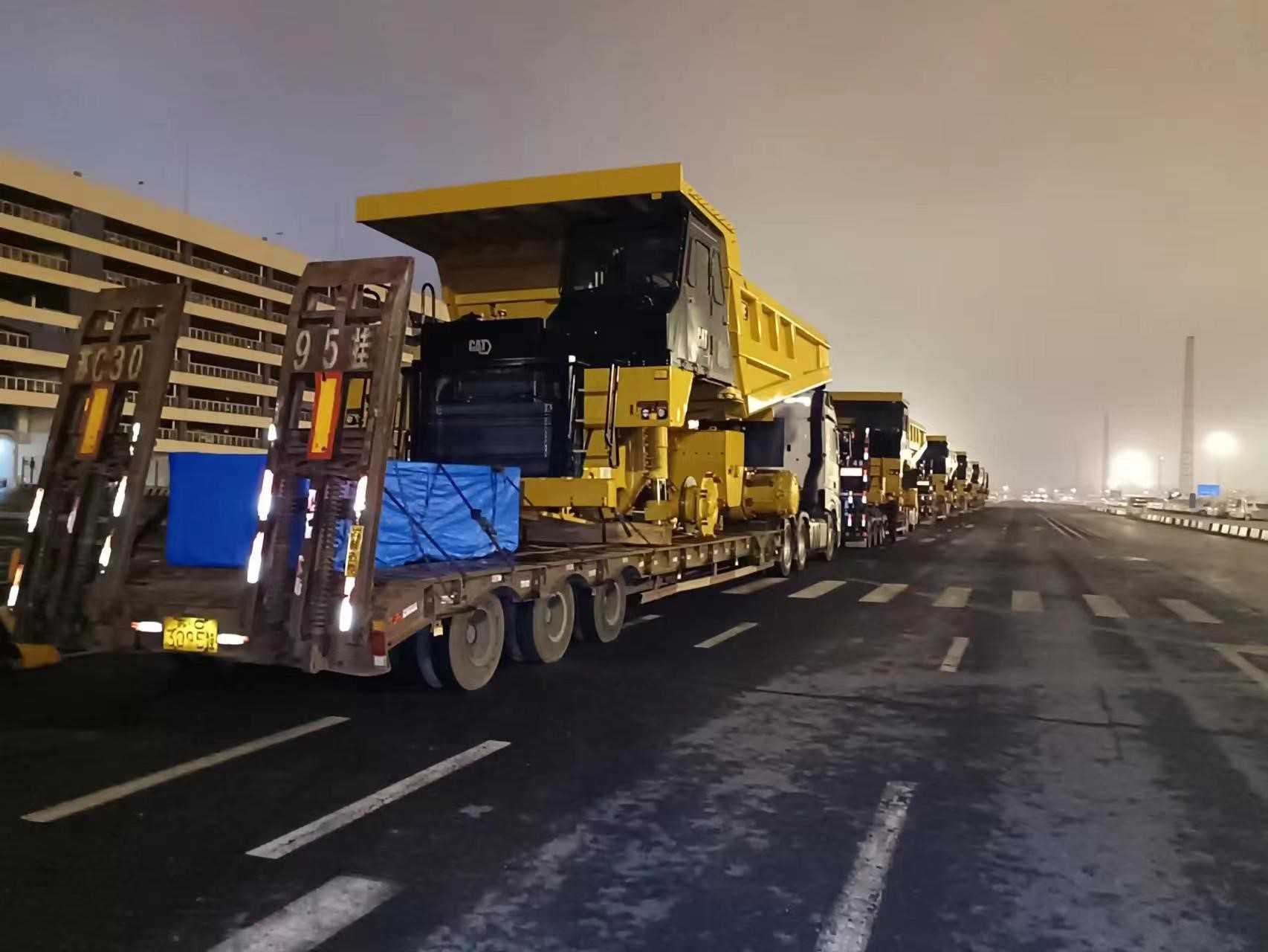 一批次发运7台773E矿卡,超限设备运输,押运车全程保障;目的地区域山路多,道路崎岖,地形复杂;排除万难,保证设备安全到达并如期交付。