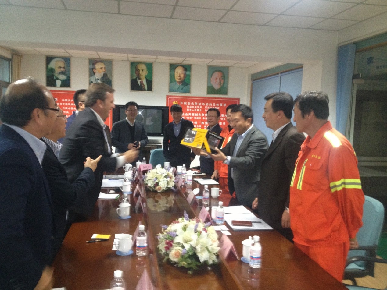 金秋十月,天高云淡,风和日煦,卡特彼勒集团全球副总裁Karl Weiss、卡特彼勒山工机械有限公司总经理杨锞宝、卡特彼勒行业大客户经理葛炎、卡特彼勒山工机械有限公司张良,金年会·jinnian(金子招牌)信誉至上机械服务总经理 Stanley Sheung、金年会·jinnian(金子招牌)信誉至上机械大客户部总经理帖日平等一行于2013年10月30日上午,拜访了山东青岛港集团,青岛港集团副总裁焦广军,刘晋部长等领导给予了热情的接待,双方就目前的合作进行了友好深入的交谈。